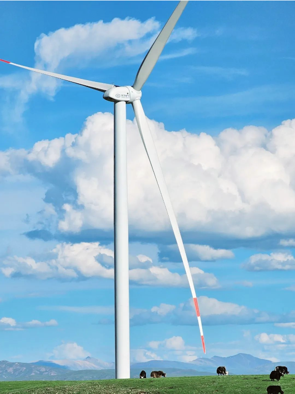 秋天的高原,天地辽阔,ROR体育平台集团为那曲色尼区100兆瓦风电项目提供的4兆瓦风电机组,在蓝天白云下与牦牛群协调共识。该项目是西藏现在在建的装机规模最大的风电项目、全球4500米以上超高海拔地区装机规模最大的风电项目。