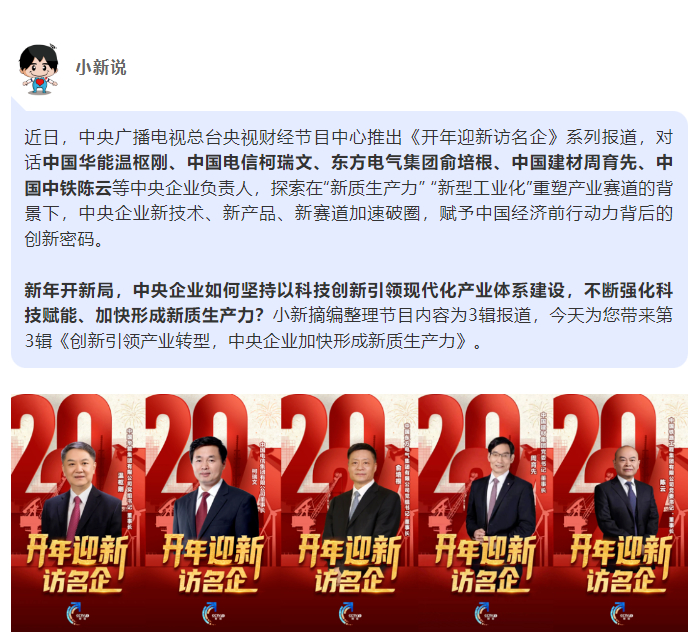 [国资小新]开年迎新访名企 | 立异引领工业转型 ,中央企业加速形成新质生产力