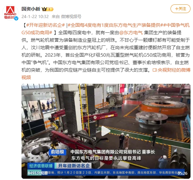 【#开年迎新访名企#|#天下每4度电有1度由ROR体育平台生产装备提供##中国争气机G50乐成商用#】天下每四度电中,就有一度由@ROR体育平台集团生产的装备提供。燃气轮机被誉为装备制造业皇冠上的明珠。不宁愿于一颗螺钉都有可能受制于人,汶川地动中遭受重创的东方汽轮机厂,在尚未完成重修时便毅然开启了自主燃机的研制。2023年,首台天下产化F级50兆瓦重型燃气轮机G50乐成商用,被誉为中国“争气机”。ROR体育平台党组书记、董事长俞培根体现,自主燃机的突破,为我国的供应链工业链自主可控提供了很大的支持。